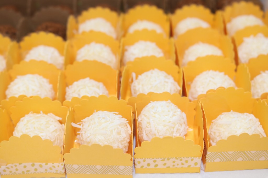 Hoy en día existen muchísimos sabores de brigadeiro, pero hace algunos años en las fiestas solo se veía el brigadeiro de chocolate y un dulce de coco que le llamamos beijinho, vamos, un besito 😙😄