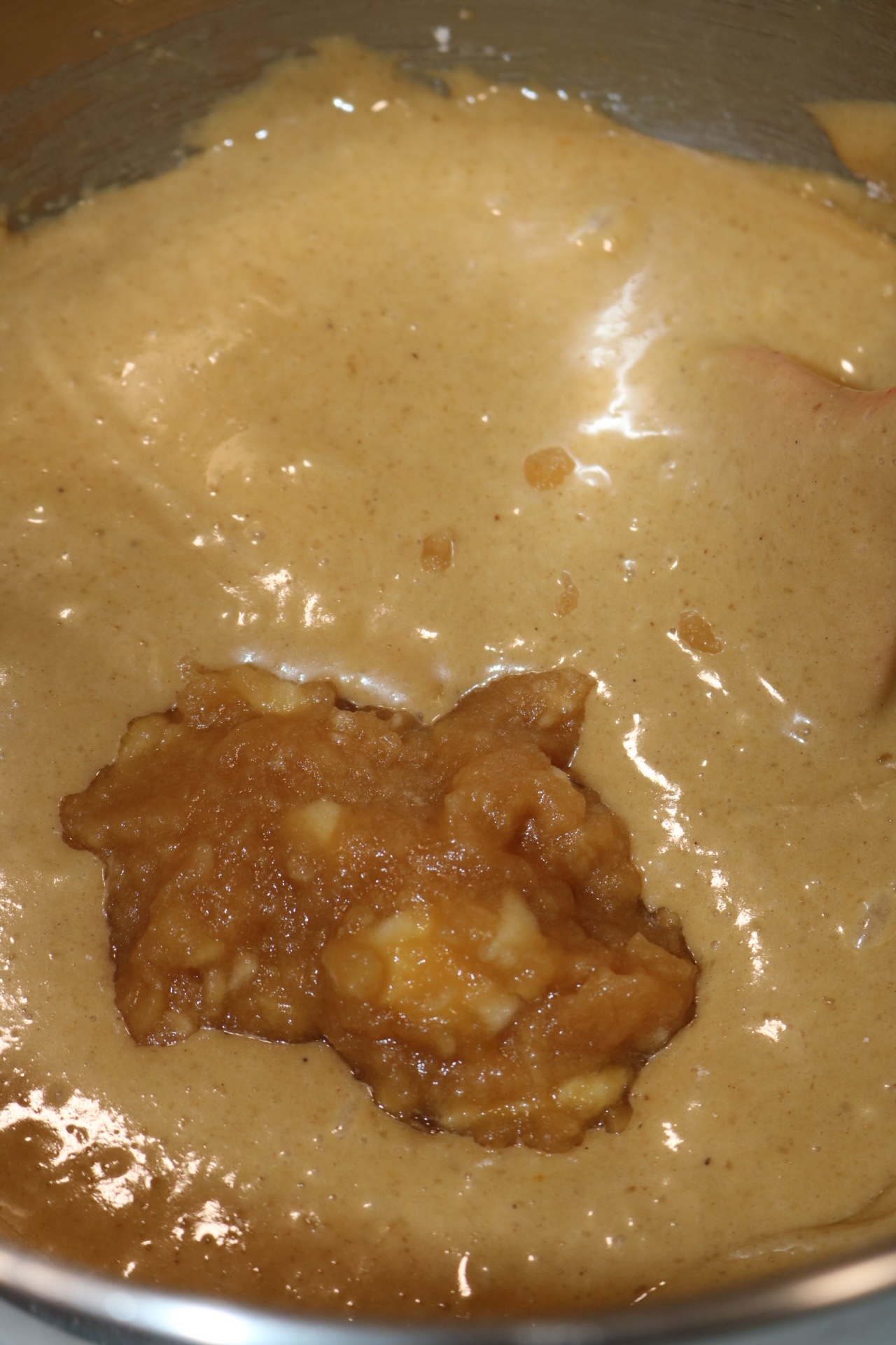 Pelamos y cortamos la manzana que nos queda, la trituramos y vertemos a la mezcla.